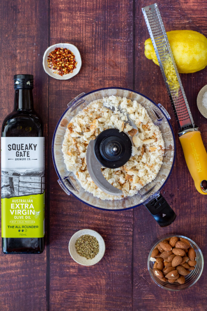- Blitz bread in a food processor