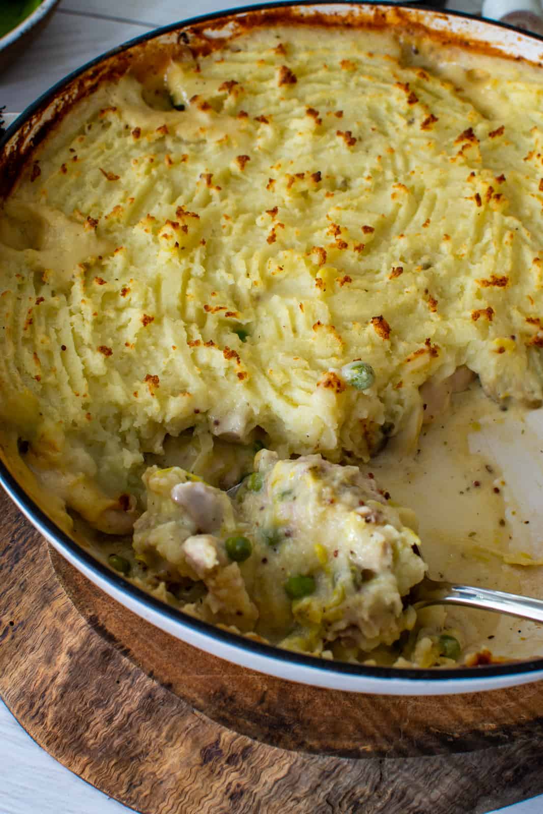 Lovely recipe...i did modify slightly, can not help myself. I added sweetcorn and doubles leeks, made horseradish potato mash for topping. Absolutely delicious, excellent recipy to follow. Highly recomend for comgorting nosh!!!