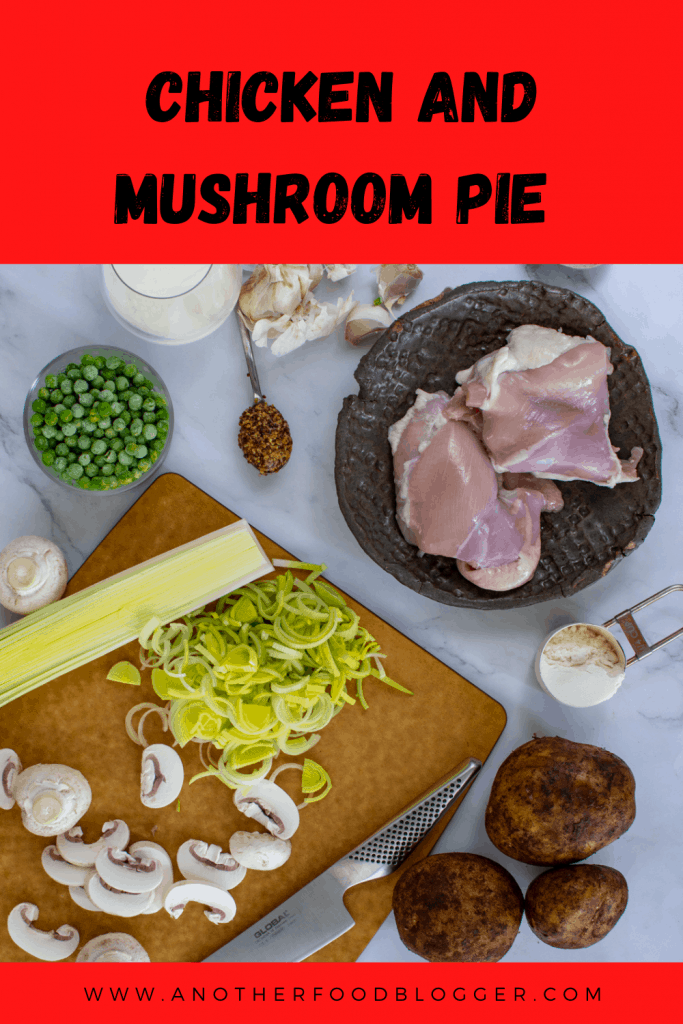 It's pretty simple really (says the man who wrote the recipe!). The beauty of this chicken and mushroom pie is the pie element is all in one pot so cleaning up is kept to a minimum. The full recipe is in the recipe card below but find some images below to help you on your way!