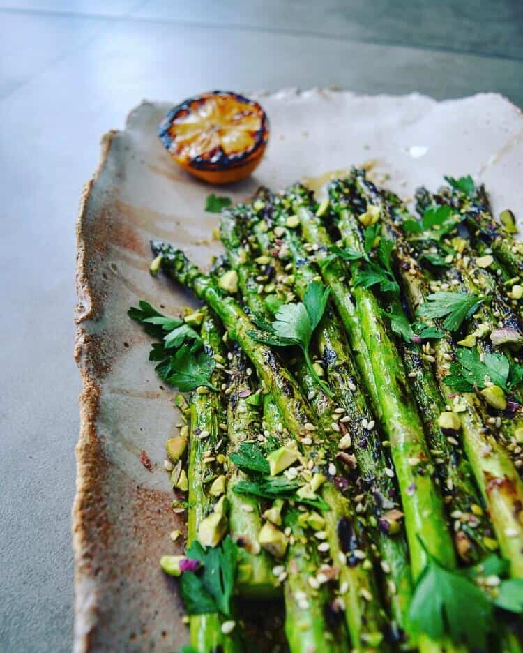 Grilled Asparagus w/ Lemon & Dukkah by Yours Truly