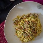 I like to make mine in advance and reheat it. The reason being is I can sit back, relax, and enjoy a glass (bottle) of wine during the process instead of frantically rushing around the kitchen. BUT, sometimes I am running late, the kid is being a kid and I need to make the sauce on the fly. I think that's what is the best part about this sauce is you can have it ready in about 10 minutes.