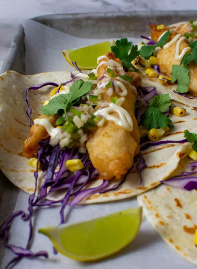 I like to cut the fish into 30-40g pieces and use 2 pieces per taco. The reason behind this - it cooks quicker and I feel like I'm also getting more 😉