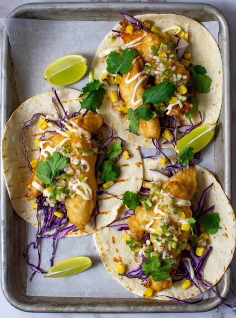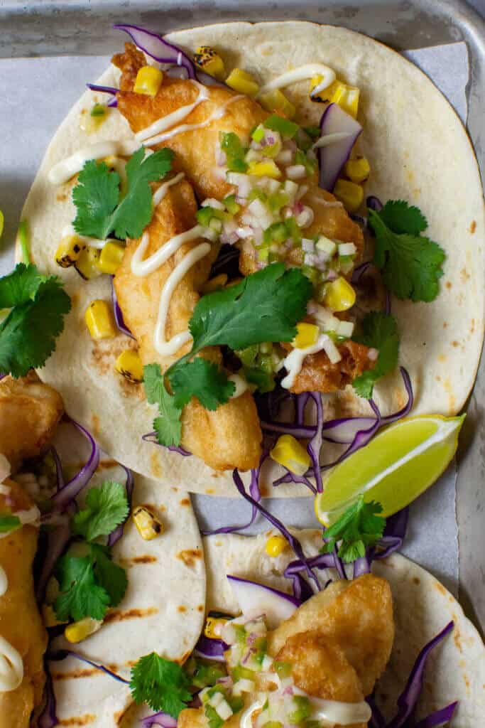 TONS. There really isn't an obvious or straight forward answer to this one. There are so many options out there. Whitefish would be the quickest way to narrow it down. For these crispy fish tacos, I used snapper. Other fish that works great is cod, haddock, pollock, grouper, mahi-mahi, or halibut. The best advice I can give is going to your local store, fishmonger or market and look for the freshest fish possible. Most good fishmongers will steer you in the right direction so don't be afraid to ask for help.