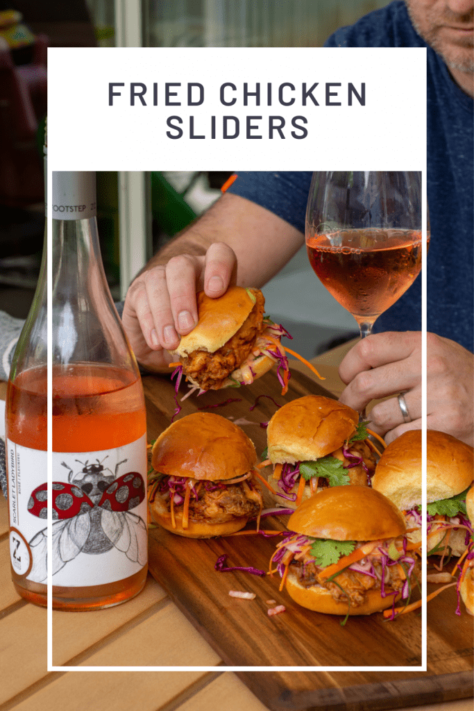The Zontes Footstep Scarlet Ladybird is one my wife and I have been enjoying lately and it went down PERFECTLY with my fried chicken sliders! It's a fresh, medium-bodied number that has tons of juicy berry notes on the nose and delightful strawberry & cream notes on the palate. There is a natural sweetness in the wine which I like with the spice from the sriracha. Honestly, we have gone through a few of these this summer!