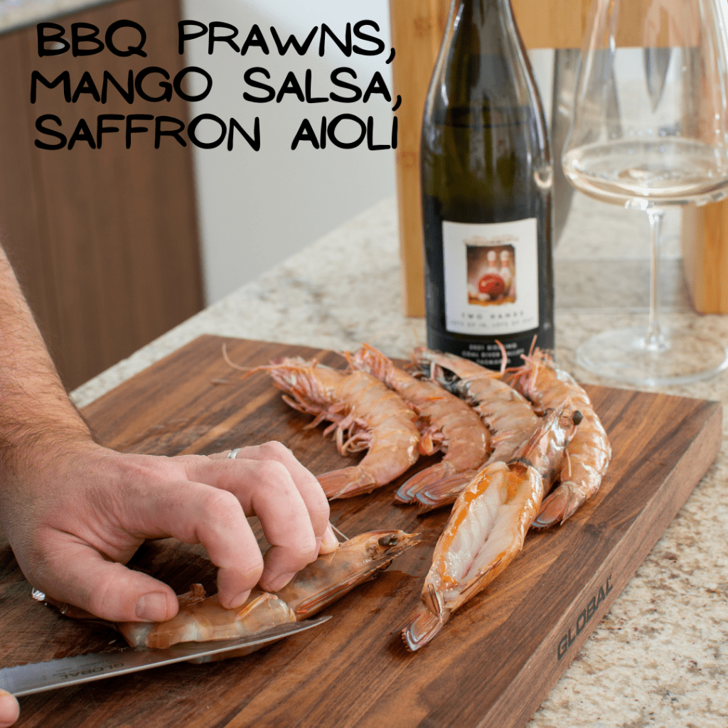 Today and many other days during Aussie summer it's about BBQ prawns. These gorgeous plump prawns are grilled on my Masterbuilt BBQ, served with a "fancy" saffron aioli and a simple but oh so tasty mango chilli salsa. The recipe is a great one to serve as an appetizer or as a lunch dish to friends/family alongside a little salad and some crusty bread. The only question is what to drink with them. Don't stress, scroll a little more and you will see my delicious wine pairing from another great Australian winery!