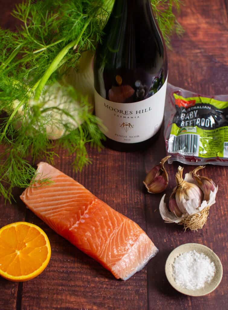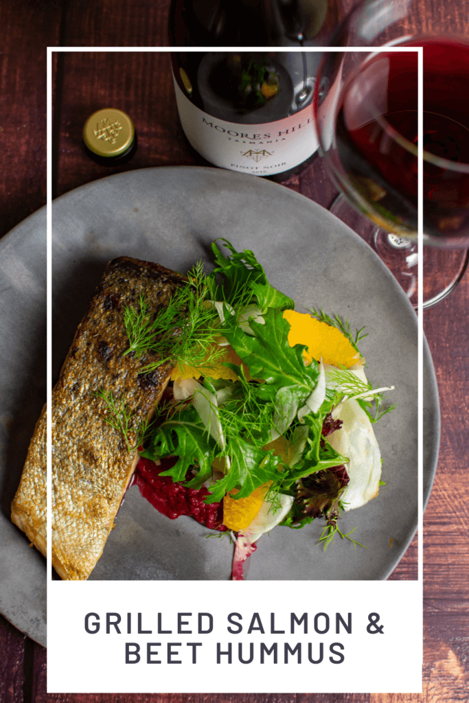 We are hitting 30 degrees celsius here in Brissie, so more fish is being cooked, lighter salads and fewer bowls of pasta. Gotta shed that layer of winter fat, so what better way to do it with some delicious grilled salmon & beetroot hummus! This hummus recipe is one I have been making for a while, fennel salad is my jam - I love it! Salmon, well salmon, is probably my favourite fish to eat. Cured, poached with some eggs for brekkie, smoked, pan-fried or grilled it's a WINNER. Read on, get inspired and don't forget to check out my delicious wine pairing for this dish too.