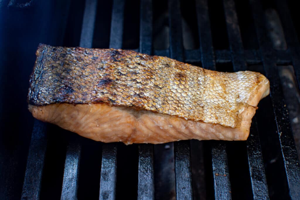 - don’t be tempted to turn the salmon before 6 minutes (unless you have a very thin fillet), the time on the grill will crisp up the skin but also make sure it won’t stick to the grill