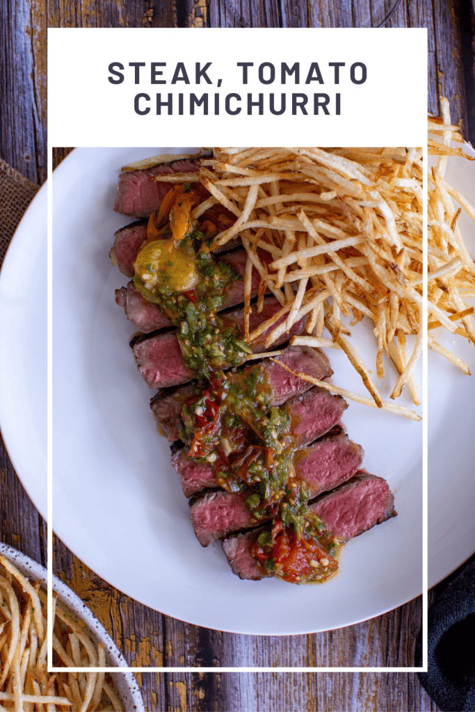 - The tomato chimichurri can be made in advance, so feel free to roast those tomatoes ahead of time to take the last-minute pressure off. The same can be done with the fries if making them too