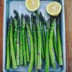 - Toss asparagus in oil, juice from inner third of lemon, salt & pepper.