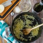 - Pour in a splash of wine and allow to reduce for a couple minutes