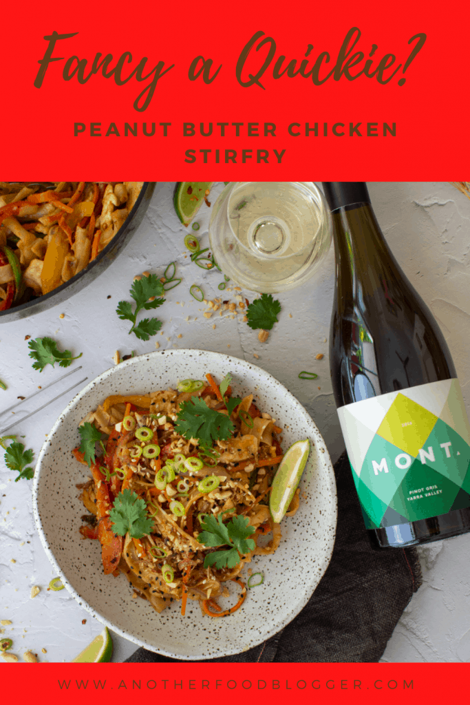 Pinot gris loves spicy food. It works great with chicken, coriander, ginger & garlic so when planning this recipe and wanting a dish that like pinot gris is simple, elegant and cracking any night of the week my peanut butter chicken stirfry came to mind right away. After all, who doesn't love a good stirfry? Chuck it all in one pan and ready in under 30 minutes - winning!