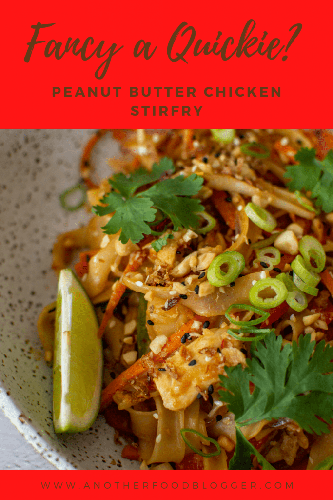 A stirfry is a stirfry. It's a great way of using leftover veggies and cooking a tasty meal for the family in no time. Where it takes on another level is when you add toppings to it. Things like chopped spring onions, crispy shallots, sesame seeds, chopped peanuts & fresh herbs. Take the dish from an average (but tasty) stirfry to an EPIC peanut butter chicken stirfry that you could defo serve on a date night!