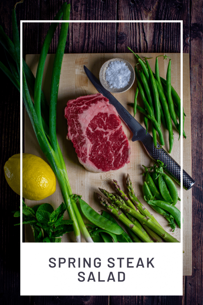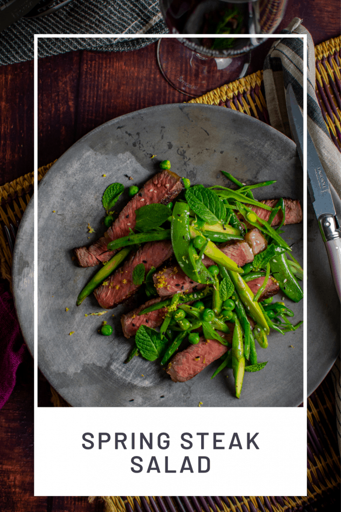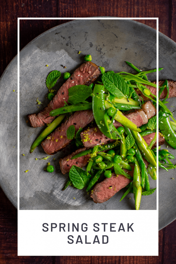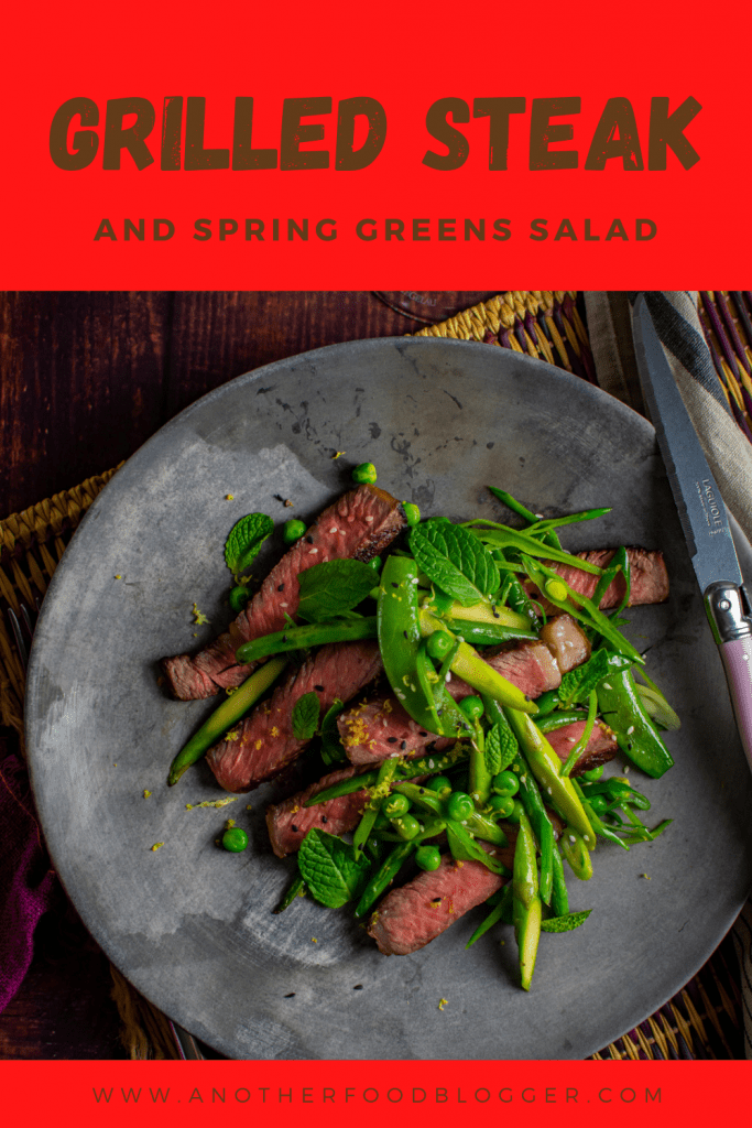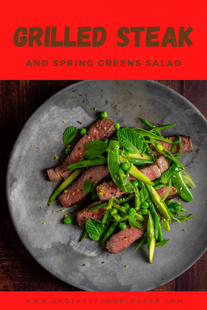 - Slice your steak thinly and serve with the spring greens. Garnish with some fresh mint leaves and some sesame seeds (optional)