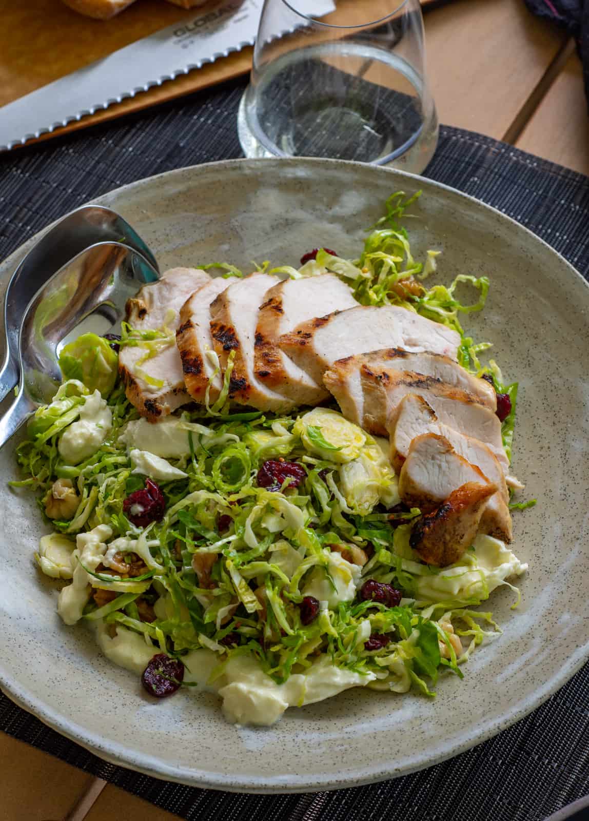 - Toss the sliced sprouts, cranberries & walnuts together with ½ of the dressing, taste it and adjust accordingly.