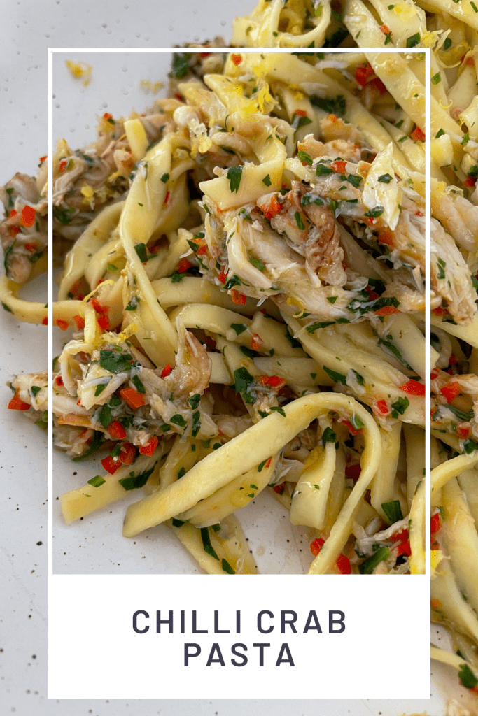 When my beautiful wife was pregnant (which obviously is hugely my “fault” or “doing”) she would crave pasta EVERYDAY!!! She would text me and ask - “what’s for dinner”? I would respond with say steak. Her response was “will there be pasta”. The next day was salmon, “will there be pasta”. Then chicken, “will there be pasta”? You can kinda see where this is going on the consumption levels of pasta in our home!! So after a busy day working/parenting I love to whip up this chilli crab pasta so I can get my feet up ASAP.