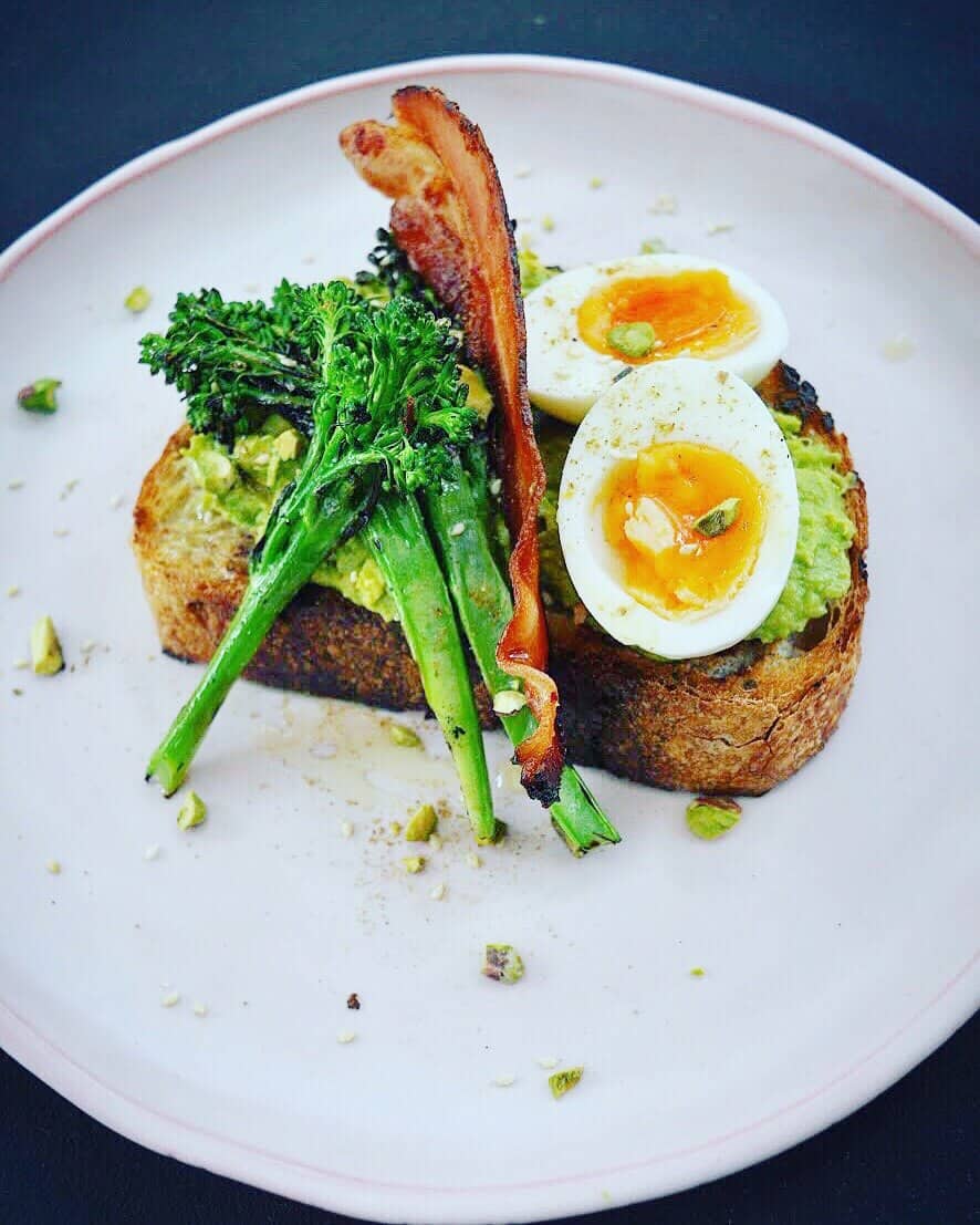 - Place smashed avo on top of grilled sourdough. Add eggs, broccoli & bacon on top of avo and spoon the dukkah over the top. Finish with some maldon salt and a squeeze of lemon and ENJOY!
