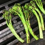 - Rub stemmed broccoli in olive oil, salt and pepper and grill on bbq or grill pan for 3 - 4 mins.