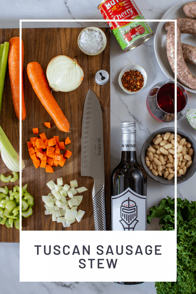 What better way to showcase a beautiful Sangiovese than with a Tuscan style sausage stew. Rich with vegetables, spices, herbs and some delicious Italian sausages I can't think of a better pairing than a bowl of this, crusty bread and (at least) one bottle of The Pawn Wine Co Sangiovese!