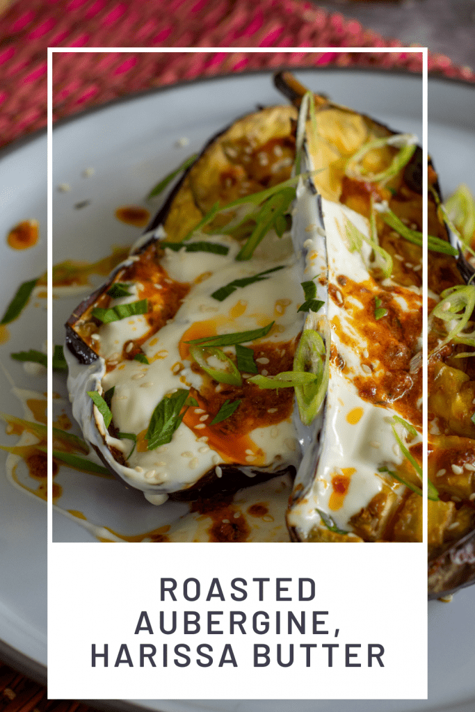 Typically we eat aubergine (eggplant) crumbed, roasted, pureed for a dip or even stewed. It's kinda a love/hate relationship but my belief is once you whip up this roasted aubergine and harissa butter dish you will be more on the love than hate side!