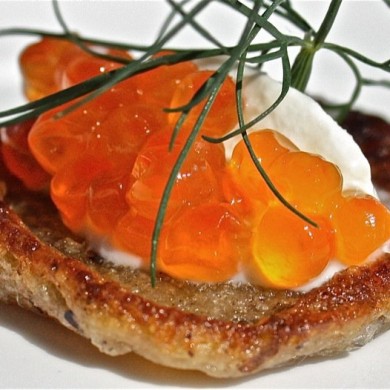 Buckwheat Blinis with Créme Fraîche and Salmon Roe