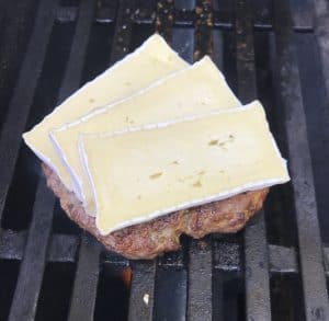 Grill the burger for 2 mins each side for a medium burger. Place brie slices on top of burger and allow to melt. If you like it cooked a little more then a further minute each side should be sufficient.