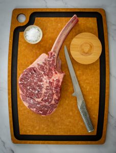 Cook your steak for approx. 40 minutes (turning half way) on indirect heat until the internal temperature is 45c (for medium rare), remove steak from the BBQ, cover gently with foil and allow to rest for 15 minutes. Meanwhile add more coal to the BBQ or turn up the gas BBQ so that it is at 300c