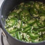 Remove from heat and add jalapenos. Stir and transfer to an airtght container. Once cooled store in the fridge